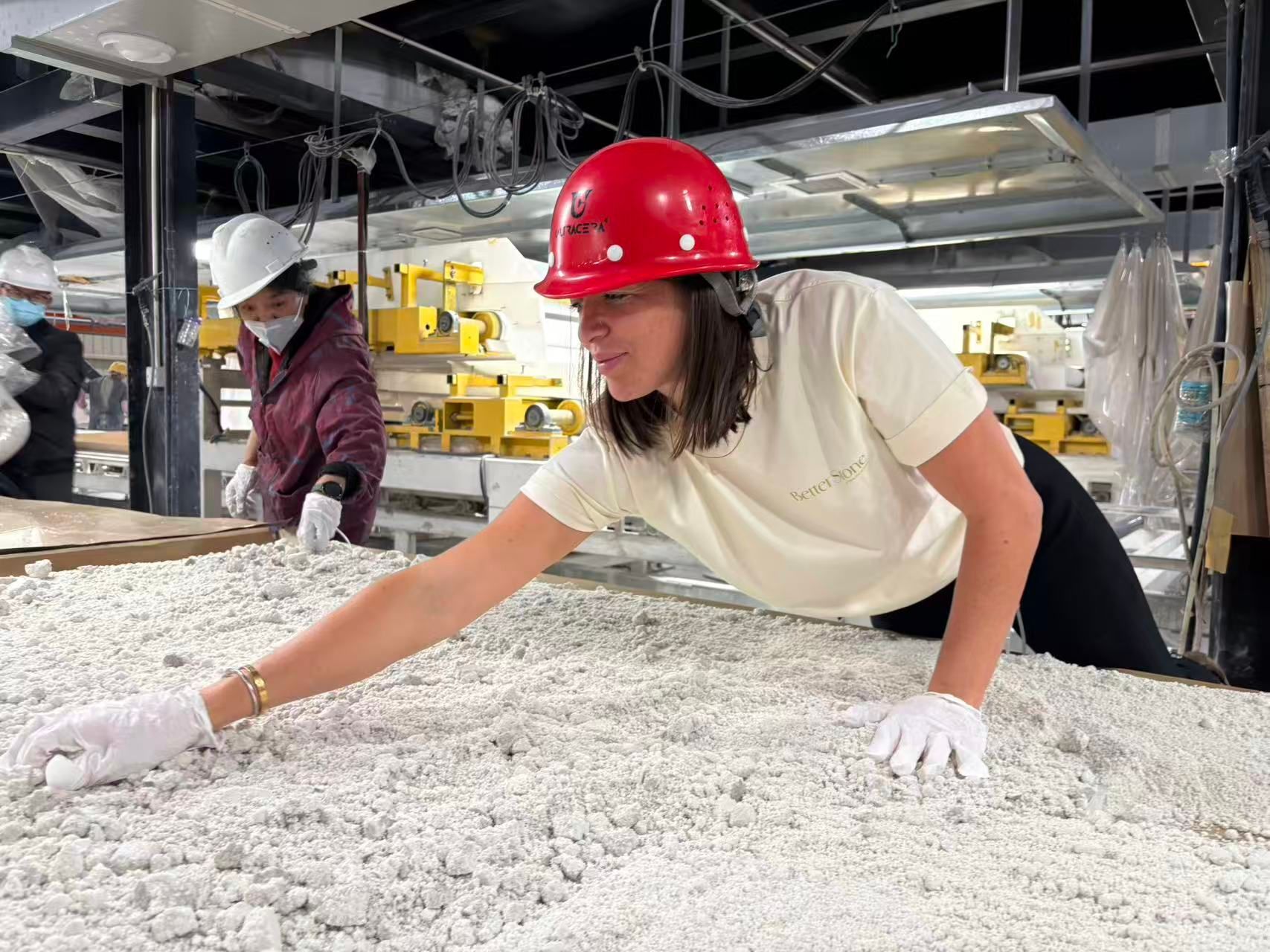 Engineered stone slabs are manufactured using crushed stone and resins to create consistent colour and performance.